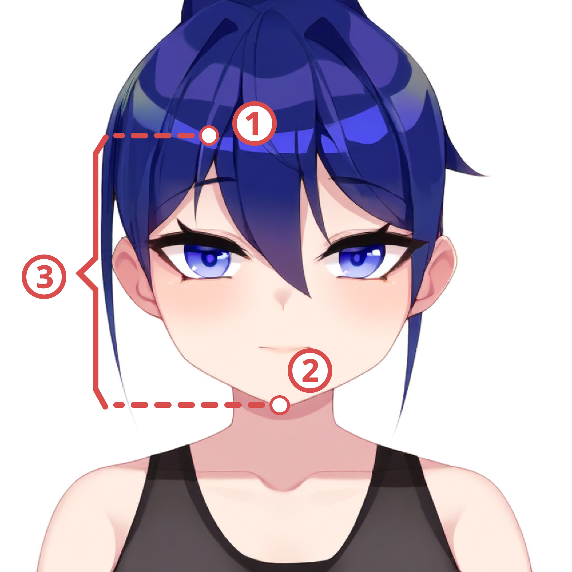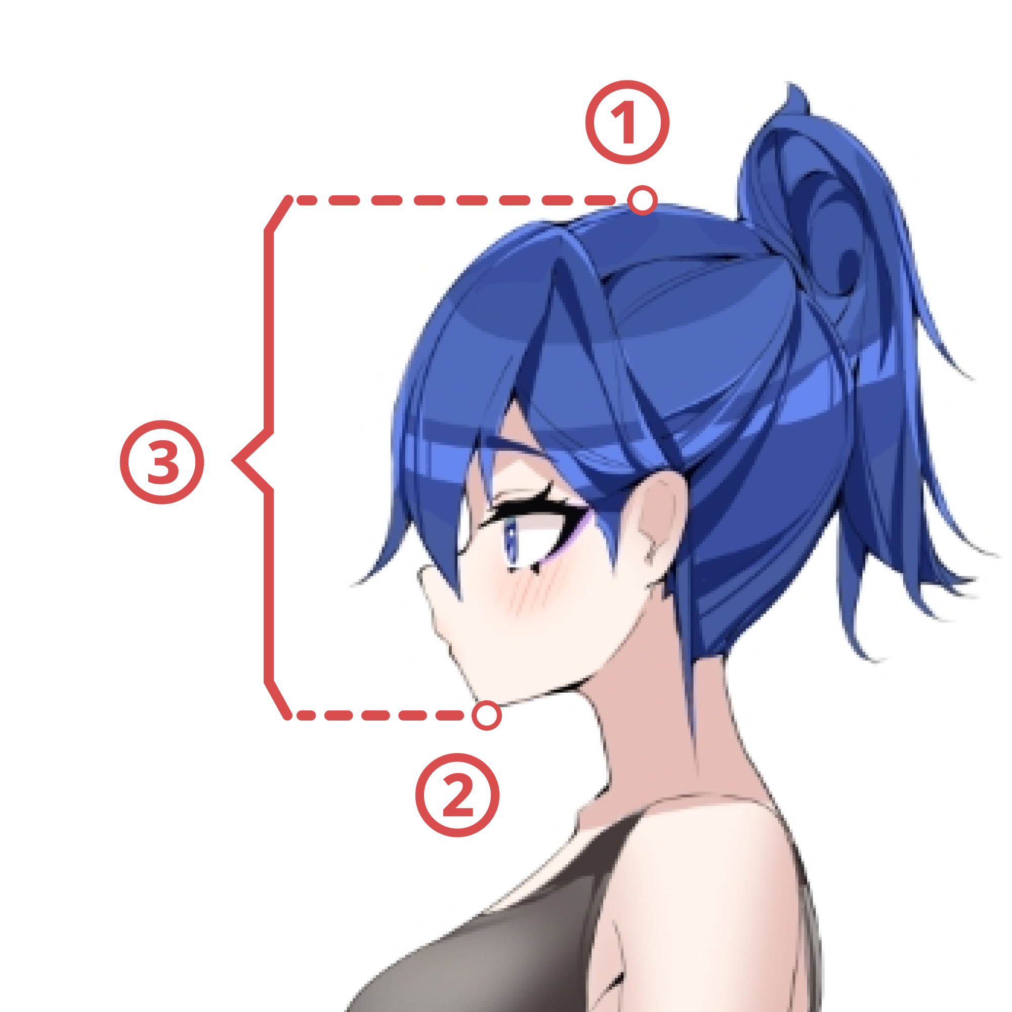 | 1 | Head Height (cm) | ![]() | Measure the straight distance (③) between the hair whorl (①) and the chin (②) |