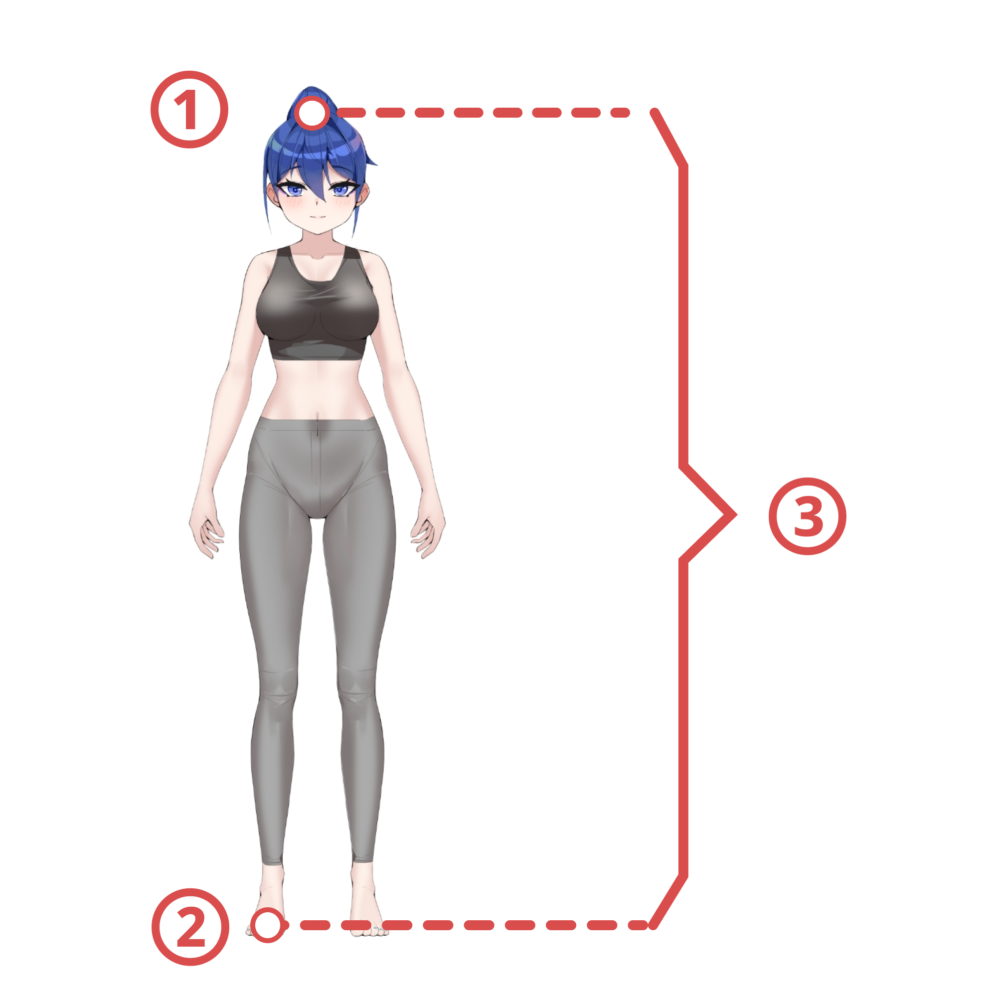 | 6 | Height (cm) | ![]() | Measure the straight distance (③) between the top of the head (①) and the bottom of the feet (②) |