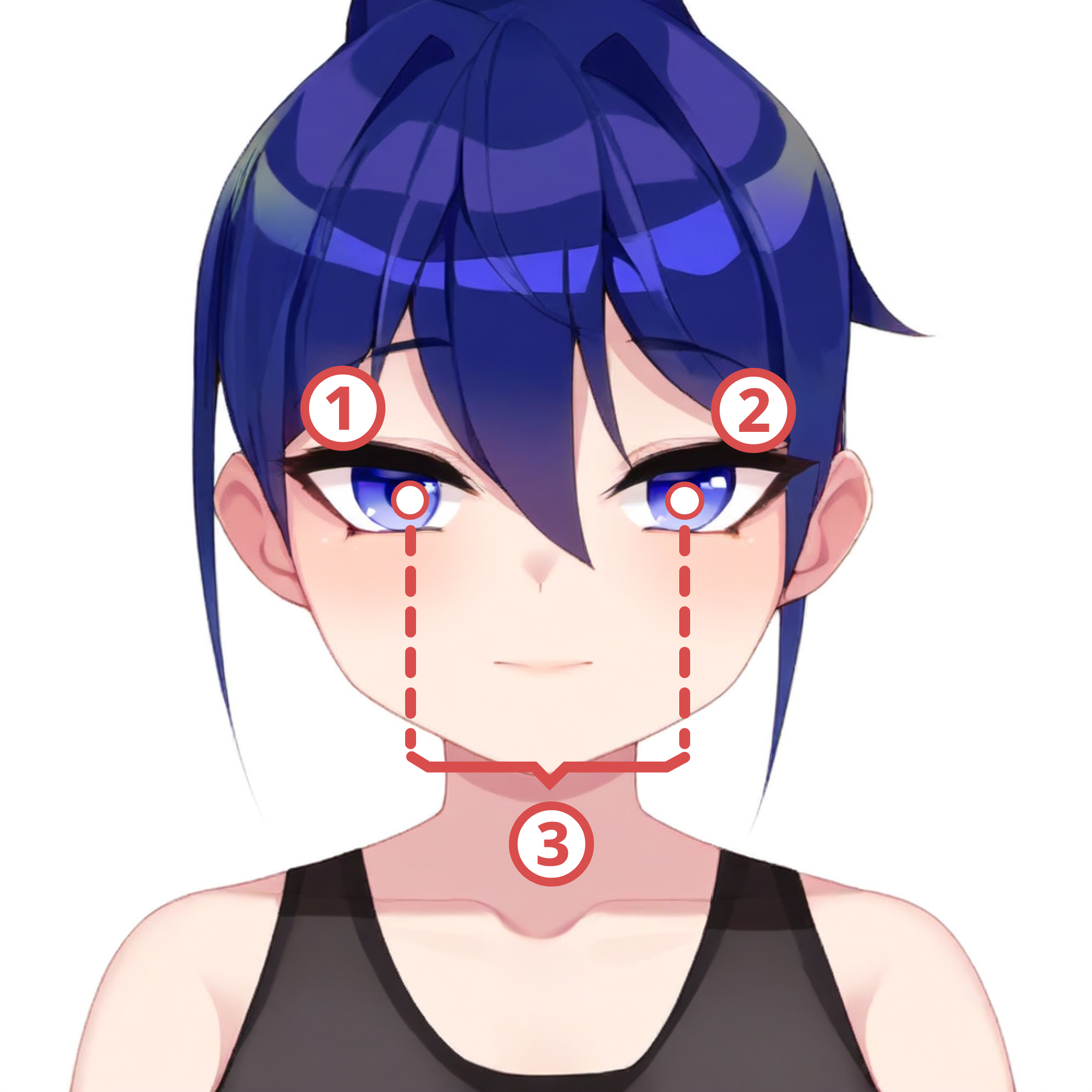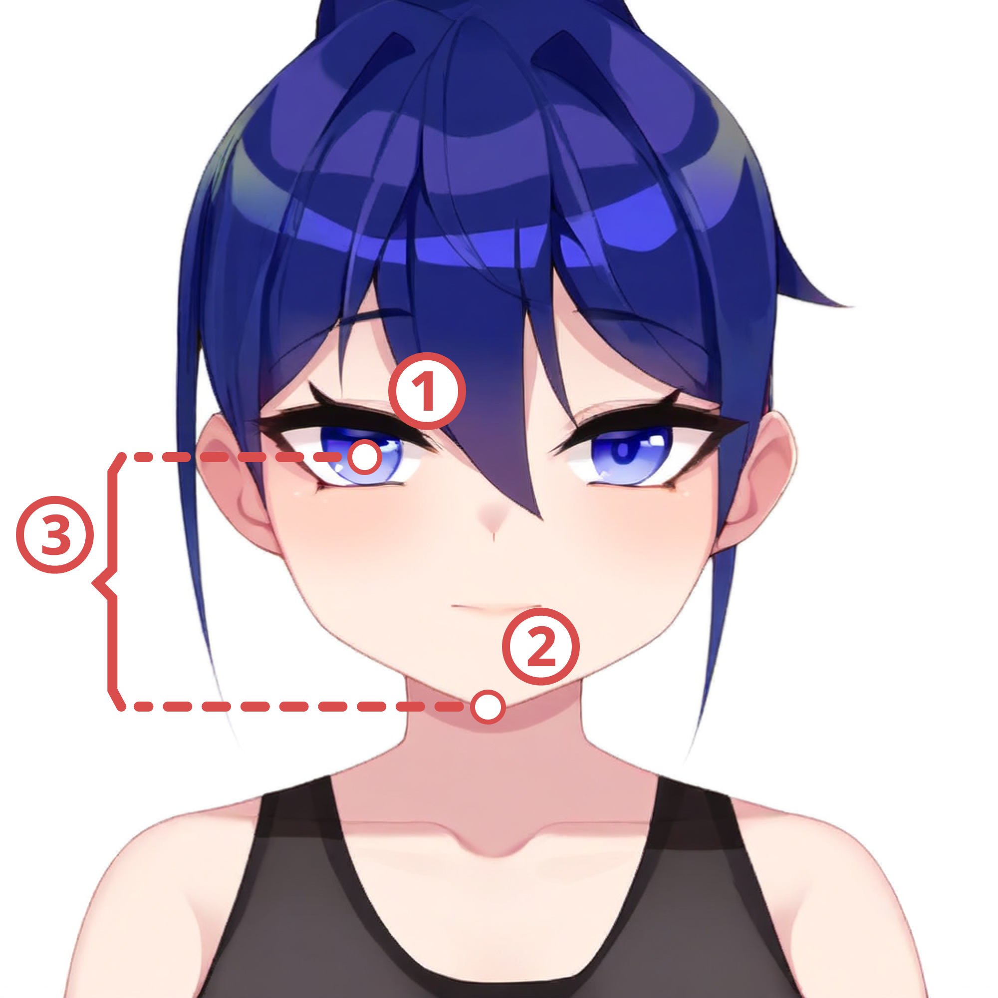 | 4 | Eye Height (cm) | ![]() | Measure the straight distance (③) between the pupil (①) and the chin (②) |