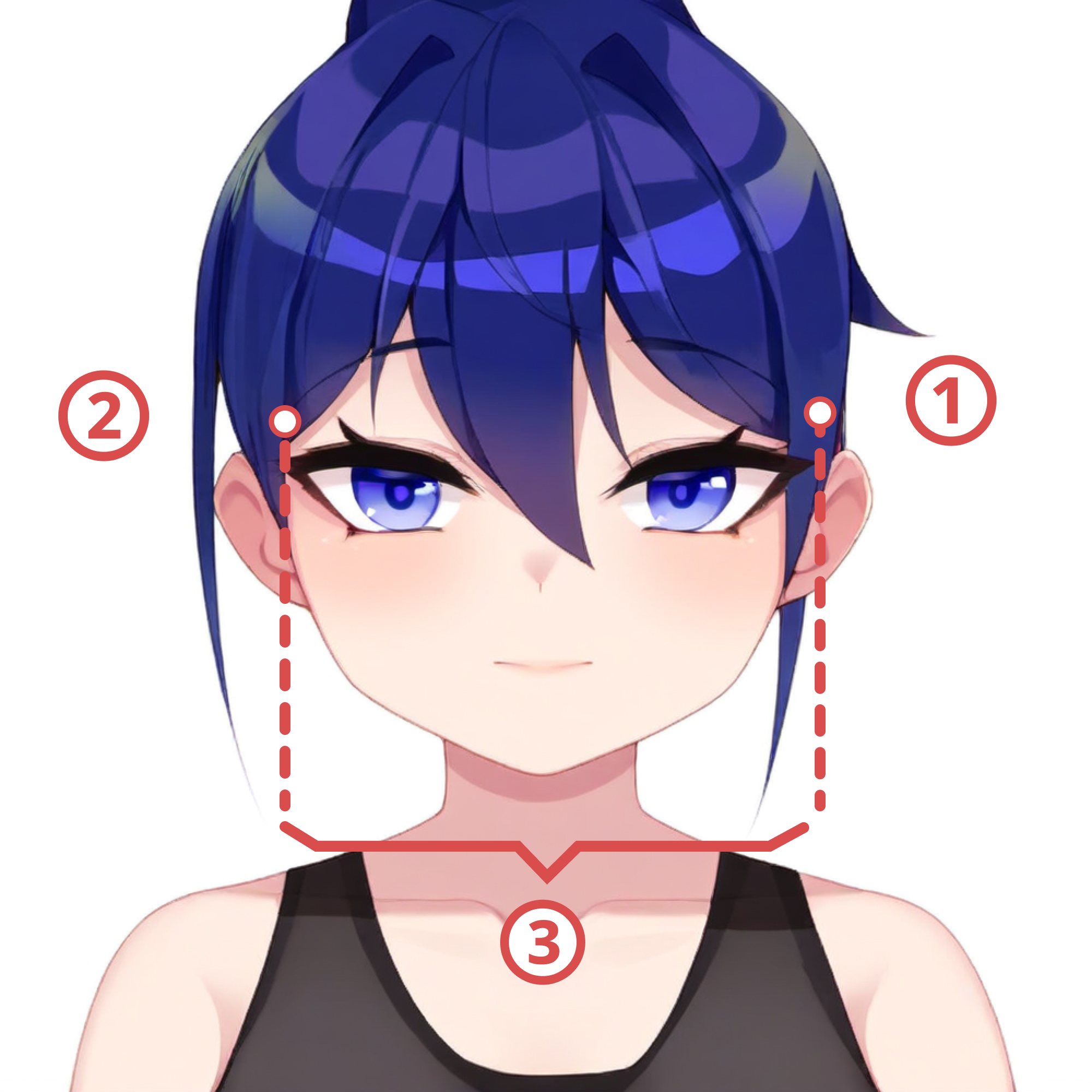 | 2 | Head Width (cm) | ![]() | Measure the straight distance (③) at the widest part of the front of the head (① ②), excluding the ears |